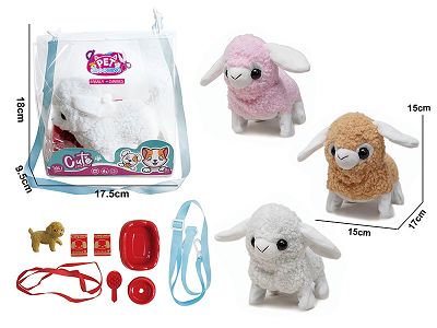 电动毛绒走路绵羊+小配件2儿童过家家遛宠物玩具