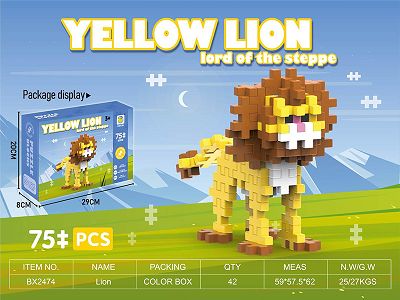 非乐高式吹塑PE积木狮子(Lion)75PCS 益智积木拼装积木大颗粒积木拼插积木动物积木