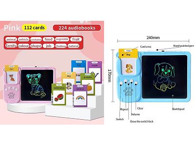 英语IC小熊112张卡片224面内容绘画手写板益智早教卡片机插卡学习机二合一(3.7V锂电包电)