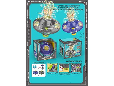 智能旋转避障飞碟火焰七彩烟花电动泡泡飞碟机