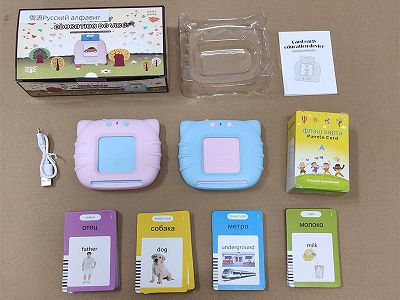 俄语+英语IC-小猫112张卡片224面内容英文Flash Cards益智早教卡片机插卡学习机(3.7V锂电包电)