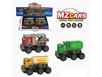 合金城市越野双惯性车 (油罐车+环卫车+拯救车+垃圾桶)