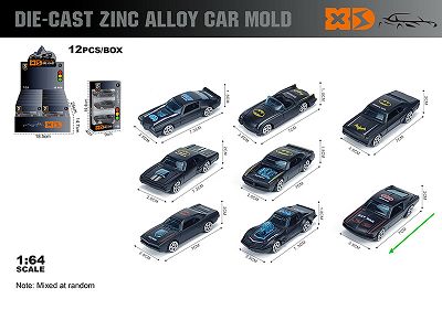 英文1:64压铸锌合金 8款混装(3只装)车模 12盒/展示盒
