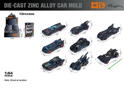 英文1:64压铸锌合金 6款混装(3只装)车模 12盒/展示盒