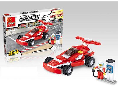 Kids DIY Gray Pull Back Building Blocks Racing Car Toys