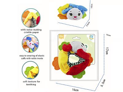 Cartoon dog wrist rattle with teether