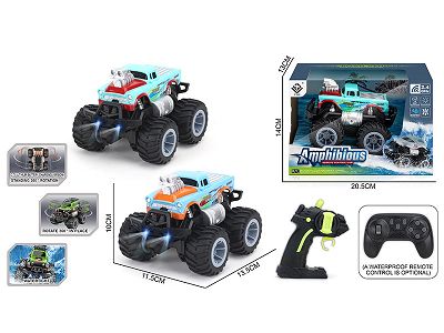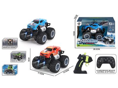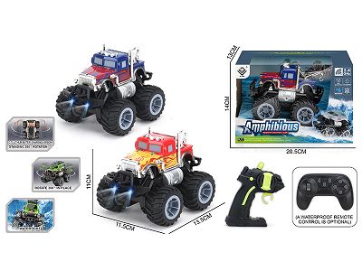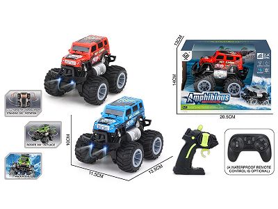 Remote-controlled amphibious stunt racing car with headlights