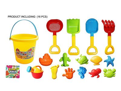 16pcs Summer Beach Bucket Set Toys