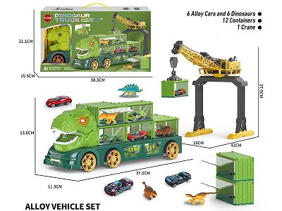 Friction Sound Light Diosaur Truck Toys With Die Cast Model Car Toys