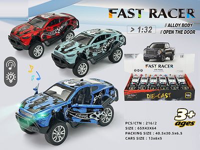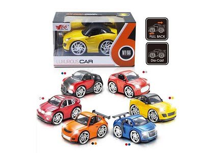 1: 28q alloy return car with light and music 6 mixed styles, each with 2 colors